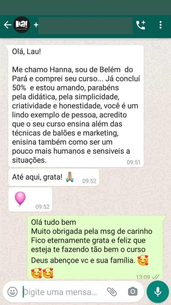 Sou a Lau Decora. Atuo na área de festas há 9 nos, e há 5 anos me dedico a ensinar pessoas a REALIZAR SEUS SONHOS de empreender no mundo dos balões, assim como eu.